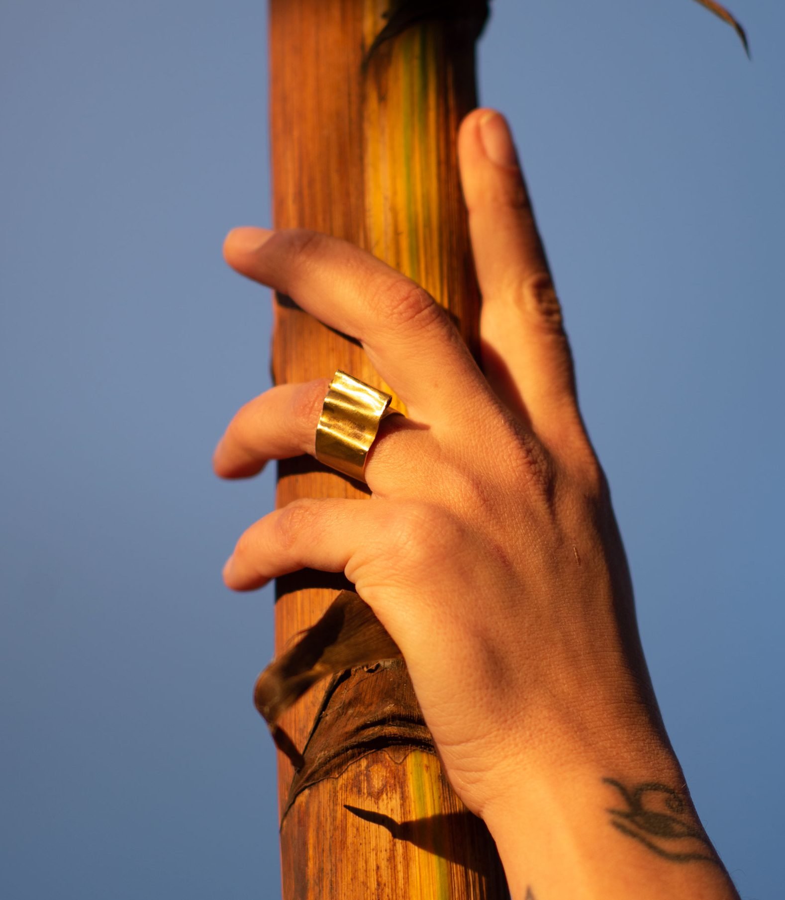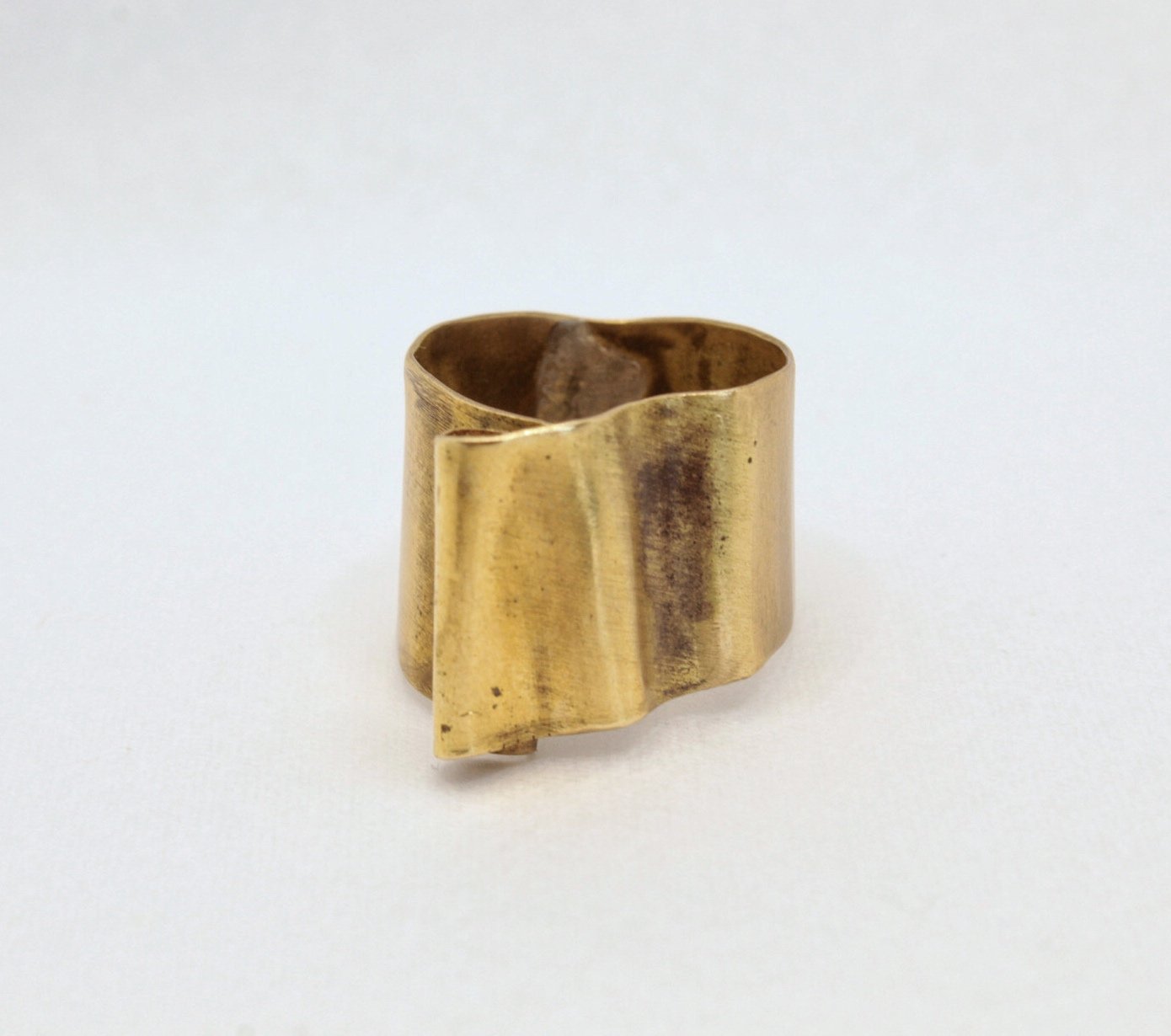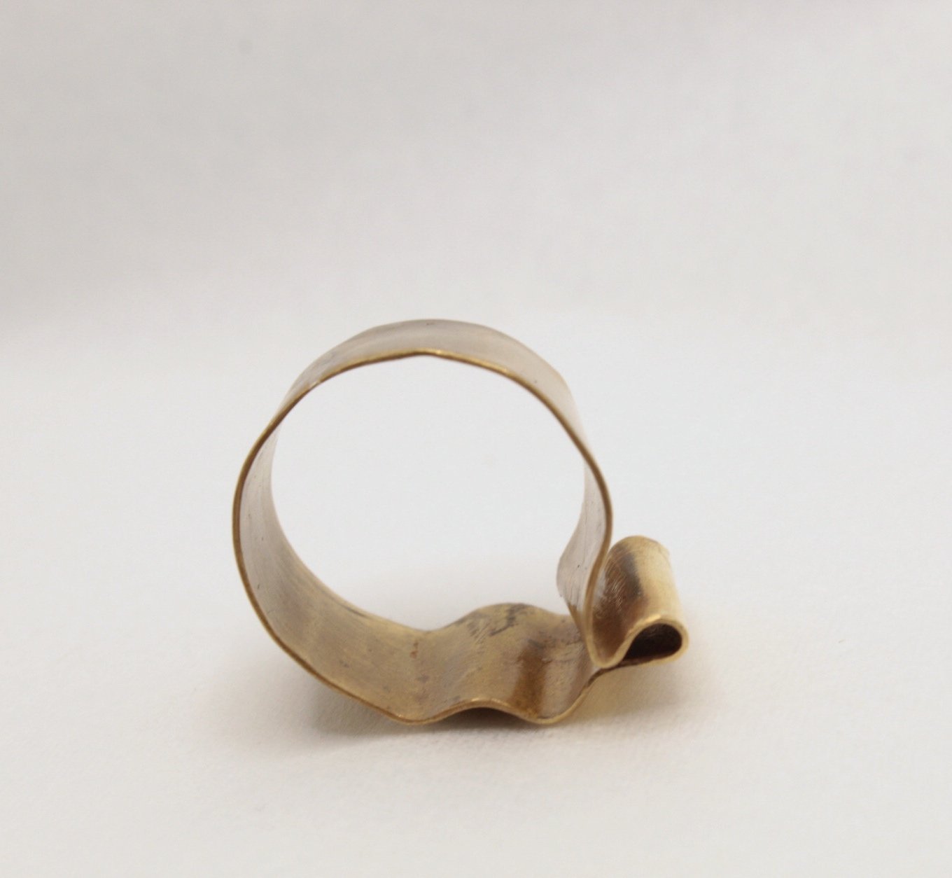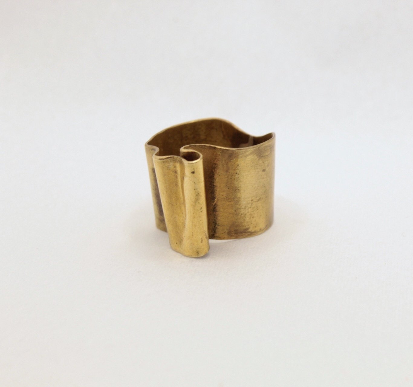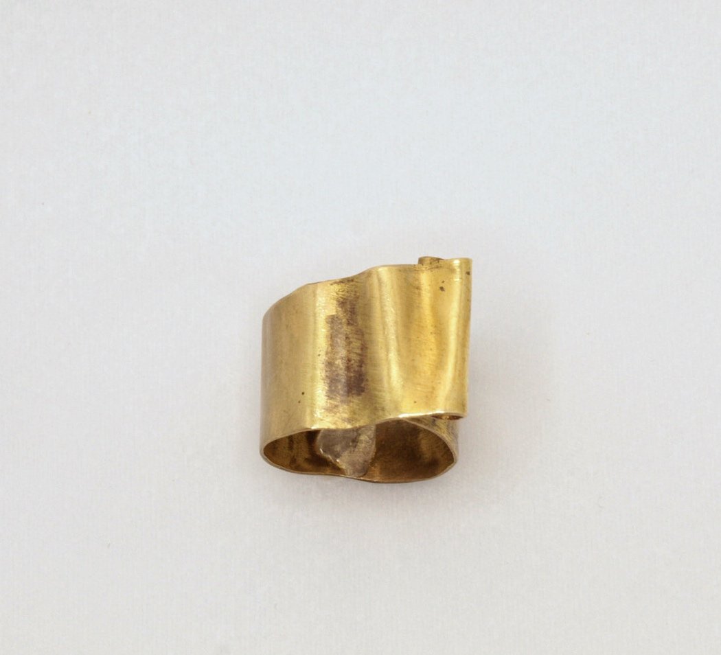 Forjado a mano en latón, este anillo captura la esencia del movimiento del mar. Su forma ondulada y el pliegue orgánico evocan la suavidad de las olas besando la orilla, el fluir constante del agua en su danza infinita. Cada curva es una huella del proceso artesanal, haciendo de cada pieza un reflejo único de la naturaleza en su estado más puro.