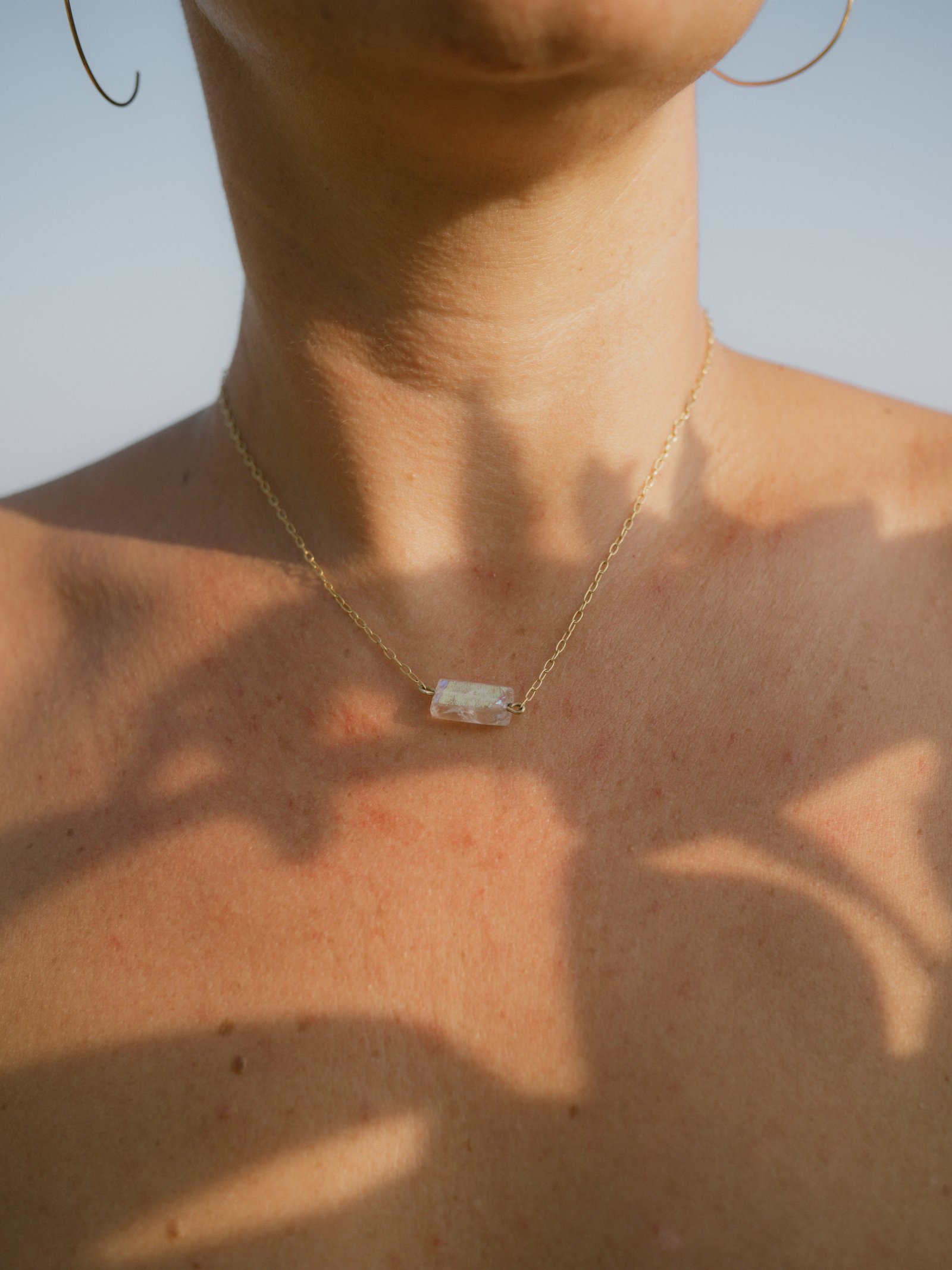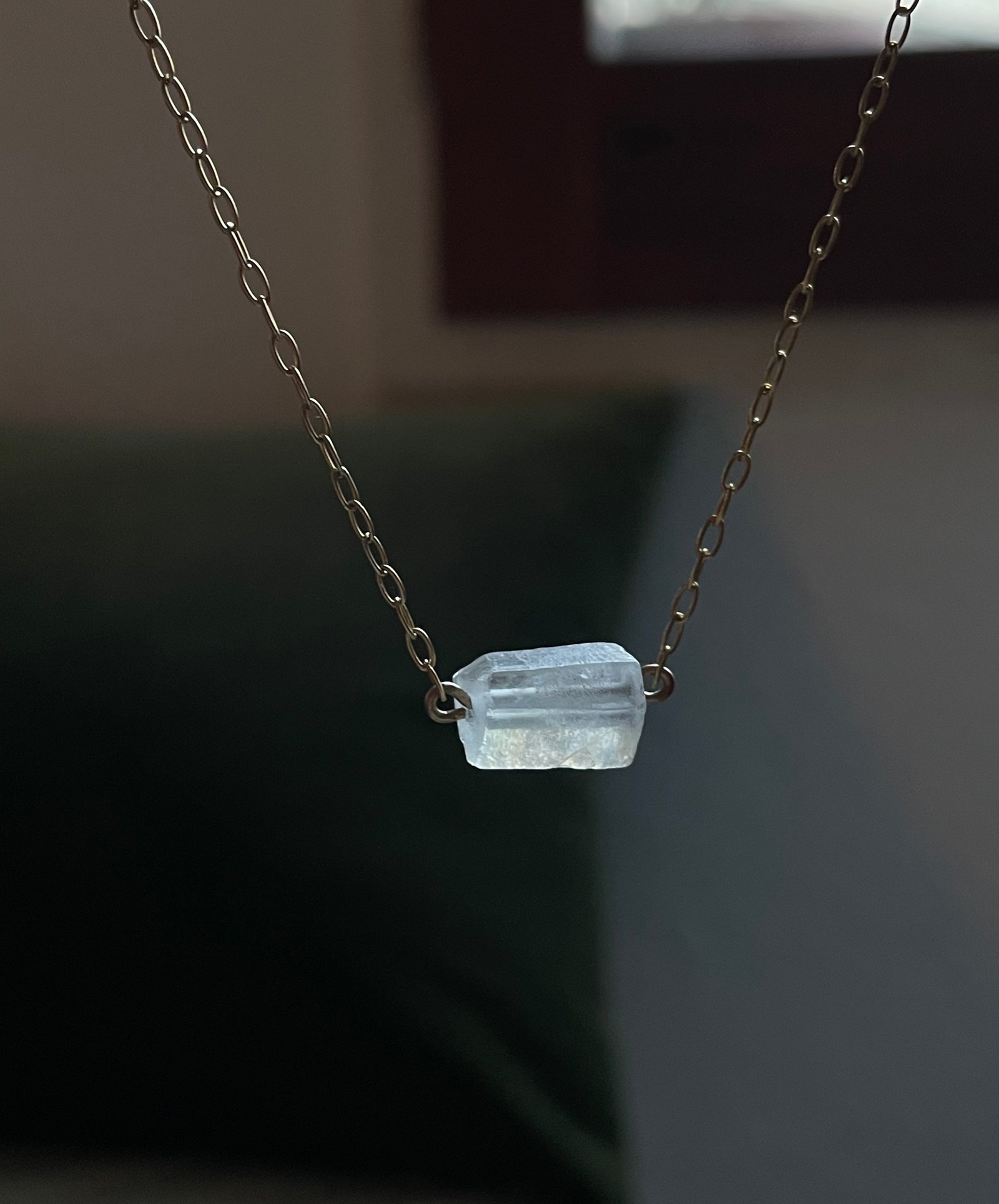 Una joya de luz y equilibrio. Este collar presenta un cuarzo translúcido en su estado más puro, suspendido en una delicada cadena de oro. El cuarzo, símbolo de claridad y energía, es una piedra que potencia la armonía y la protección.