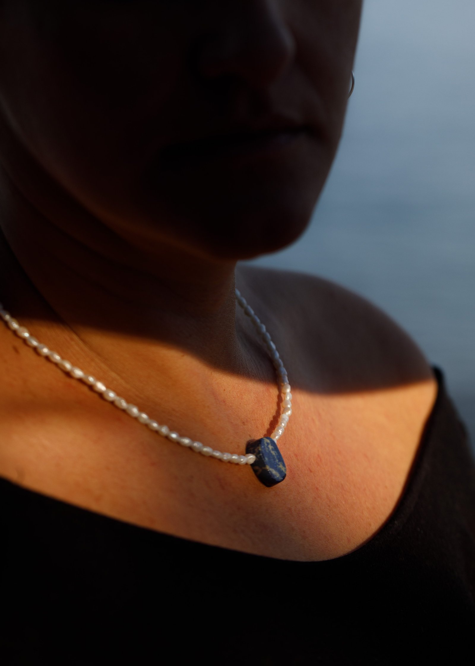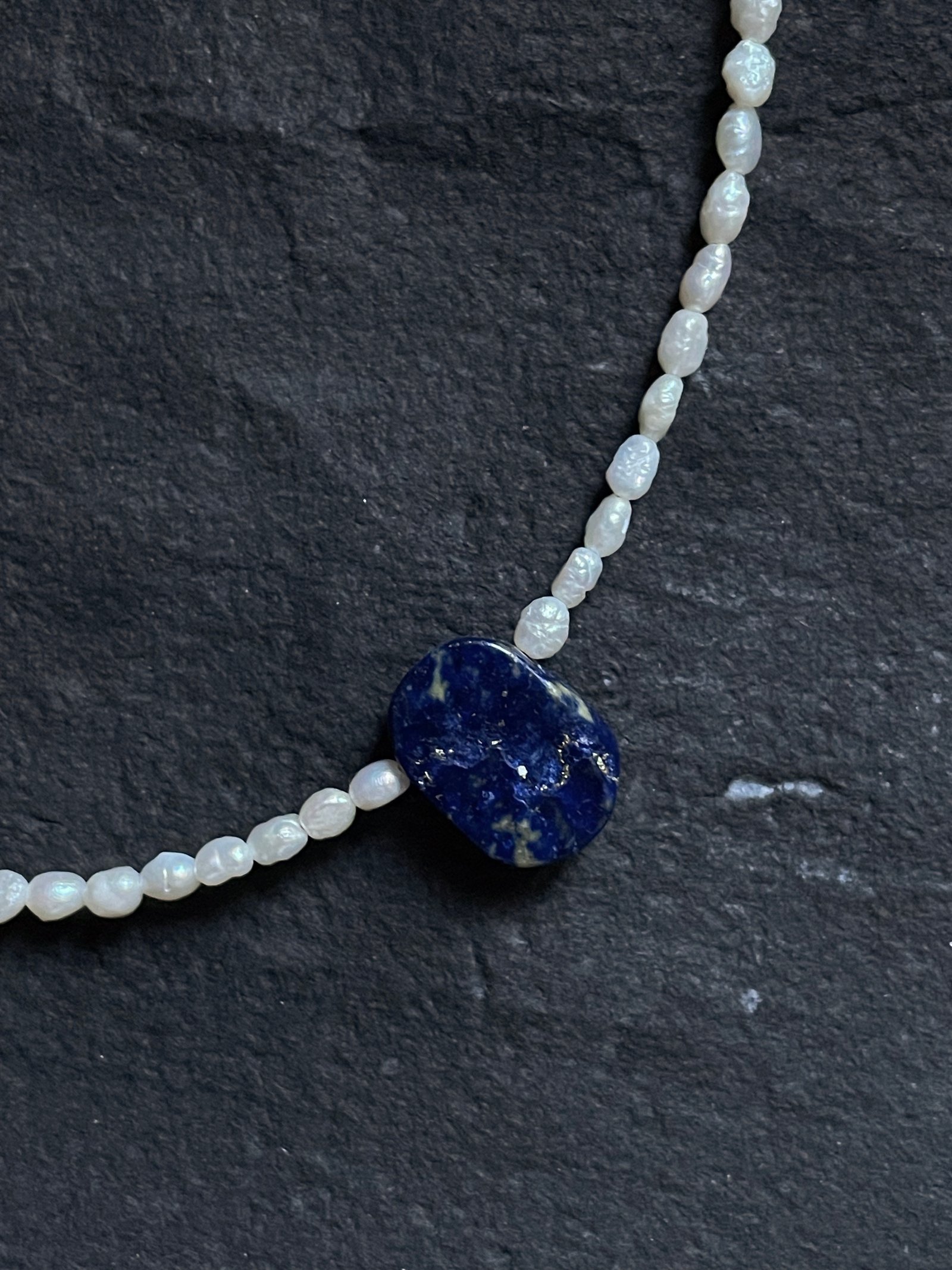collar lapislázuli y perlas de rio
