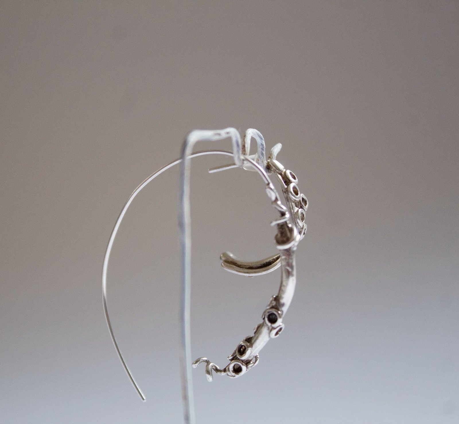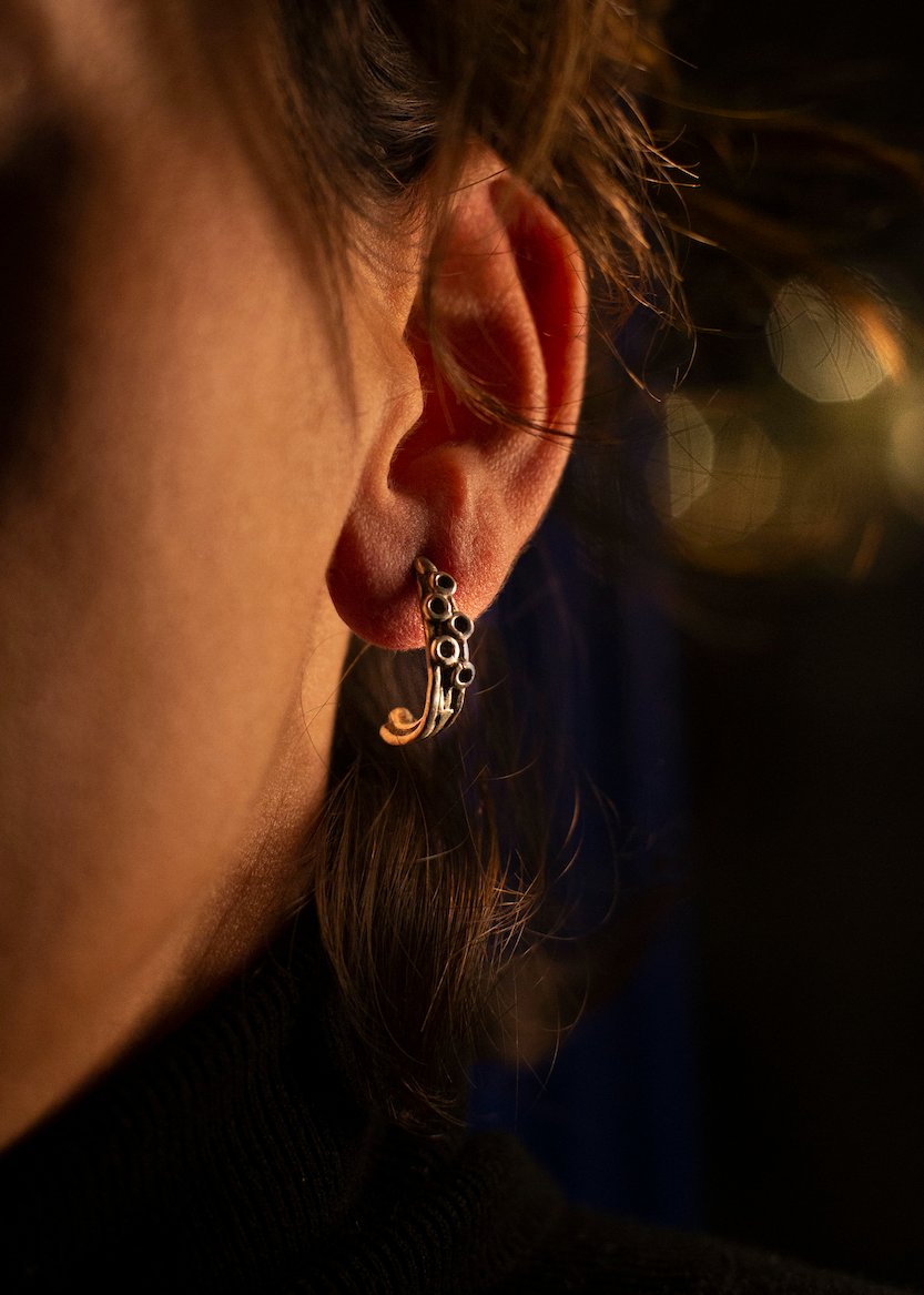 pendientes que hacen parte de una colección , con piezas únicas y de autor, todas inspiradas en los fúndales marinos, estos bonitos tentáculos de pulpo están hechos a mano (sin moldes) en plata 925.