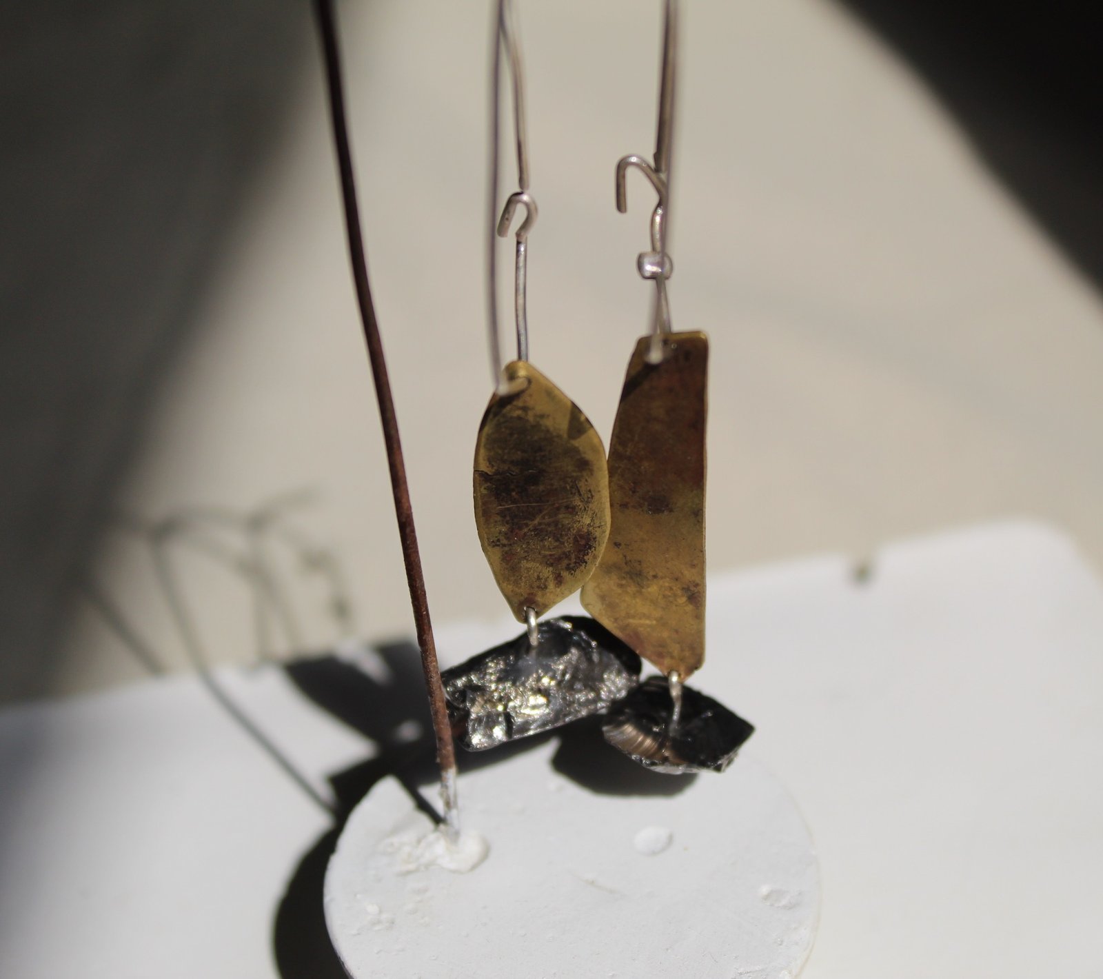 pendientes hechos a mano en latón, plata 925 y cuarzo.67